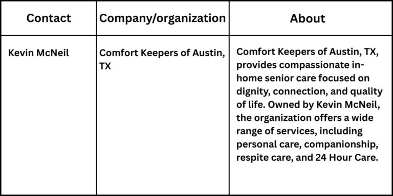 “Families often come to us feeling stretched thin and unsure of their next step. Having care available at all hours brings comfort and stability, helping loved ones remain at home while giving families confidence that someone is always there to provide support and companionship,” said Kevin McNeil, owner of Comfort Keepers of Austin, TX.