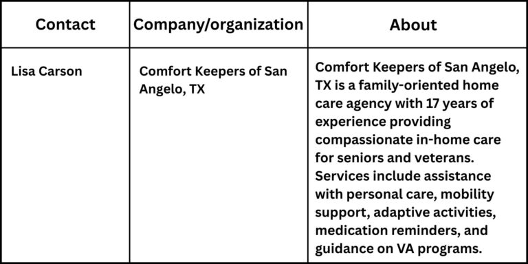 “We understand that many families are trying to balance work, children, and the growing needs of a parent, often with limited time to make decisions. Our role is to provide consistent support in the home, helping reduce uncertainty and allowing families to spend more meaningful time together,” said Lisa Carson, owner of Comfort Keepers of San Angelo, TX.
